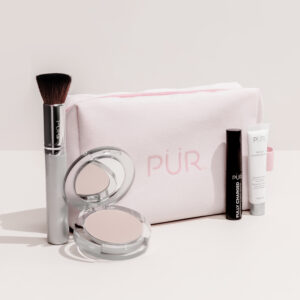 Multiessential Kit – products standing angled – outside bag – on split cream-2400